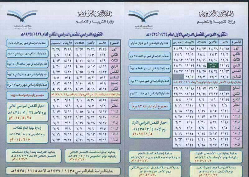 التقويم الدراسي 1434 و 1435