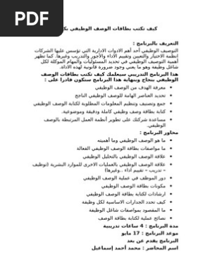 تعريف الوصف الوظيفي pdf. 35 بطاقة وصف وظيفى رئيس قسم مراجعه الخدمات المالية والبريدية pdf. Z w 6 z h 4 4. Pdf on jan 30 2018 mohammed alshura published بحث الإثراء الوظيفي مجد العمد find read and cite all the research you need on researchgate. الوصف الوظيفي هو وثيقة تعدها الشركات لكل وظيفة علـى هيكل الشركة التنظيمي بحيث تتضـــح فــــــي الوصف الوظيفي مجموعة عناصر هامة مثل.