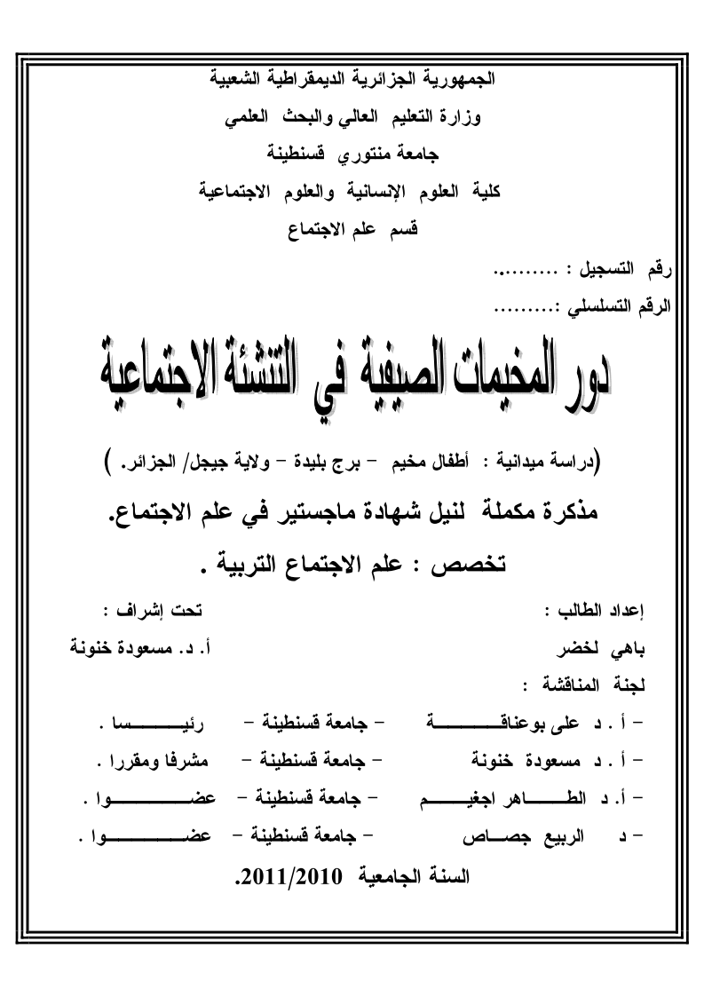 رسائل ماجستير عن التنشئة الاجتماعية Pdf