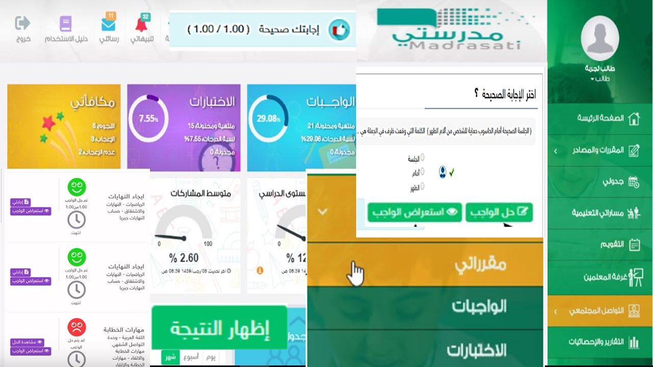 شرح منصة مدرستي وكيفية معرفة الطالب وجود اختبار أو واجب في منصة مدرستي