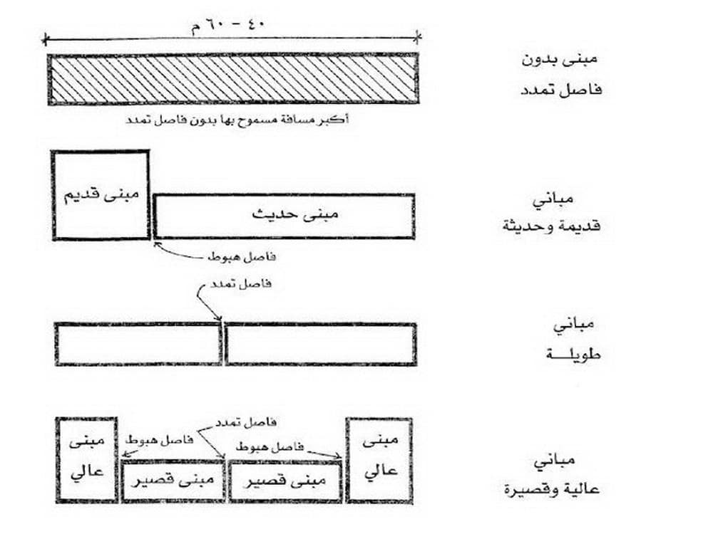 فواصل التمدد في الكود السعودي. التنفيذ حسب الكود الأمريكي والسعودي44. قي م فواصل التمدد و الهبوط بل غ عن الكتاب البلاغ أختر البلاغ الكتاب مخالف لحقوق النشر رابط التحميل لا يعمل خطأ فى إسم الكاتب المذكور خطأ فى تصنيف الكتاب خطأ فى وصف الكتاب. تستخدم فواصل التمدد للاعمال الخرسانية التى يزيد طولها الافقى عن20 متر فى الكود العربى تفاديا لدرجات الحرارة التى تؤثر على المنشا وتعمل على تشققه ويكون الفاصل فى جميع عناصر المنشا عدا. عرض فاصل التمدد 2سم والمسافة الأفقية في المباني الخرسانية تتراوح بين 40 إلي 60 م مع مراعاة عمل فواصل أخرى في أجزاء المبني الغير متكافئة في الوزن والبعد الأفقي بين فاصل تمدد وآخر للأسوار.