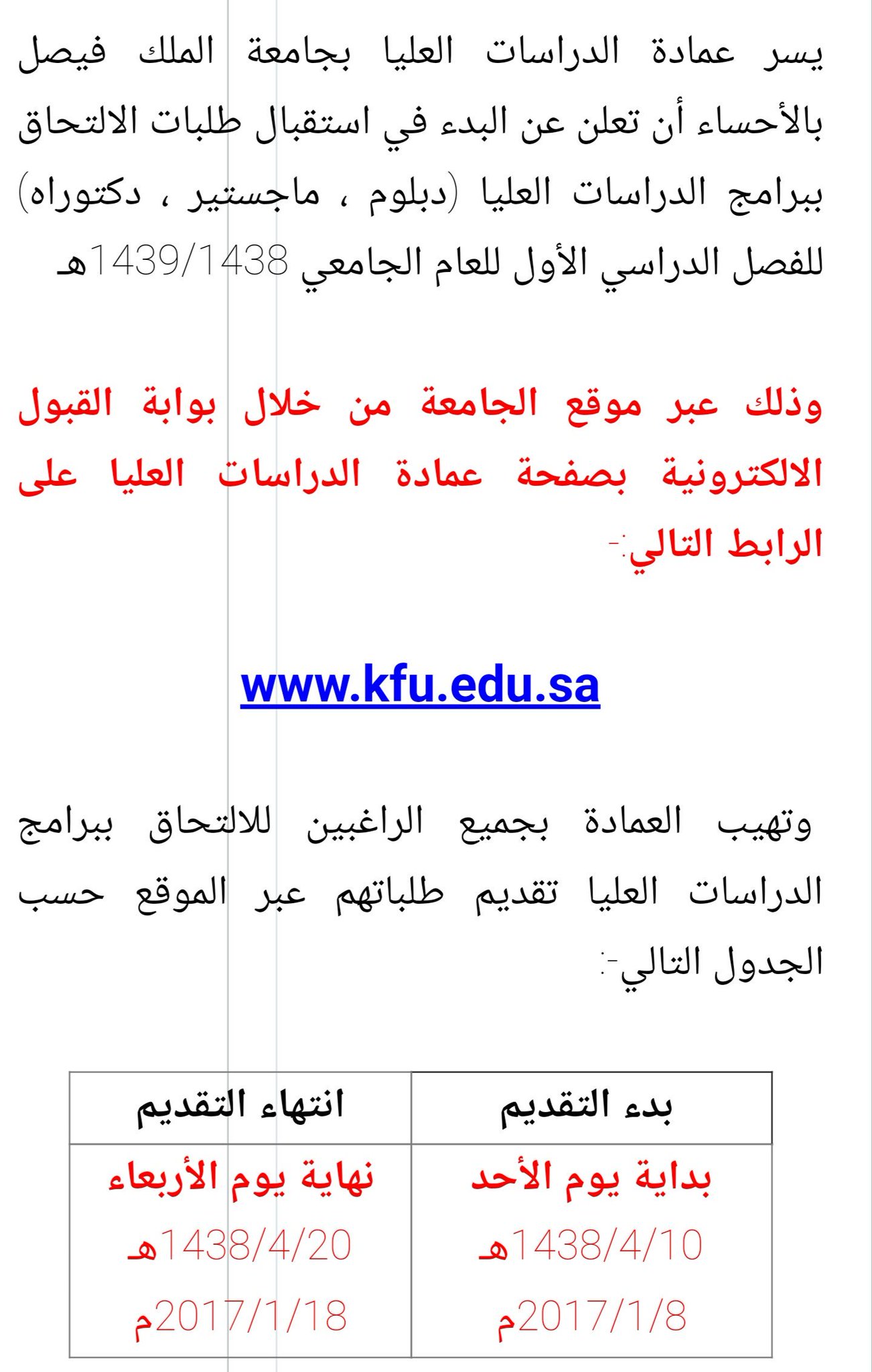 ماجستير جامعة الملك فيصل 1438. يمكنك الحصول على ماجستير مالية من أحد الجامعات السعودية. جامعة الملك فيصل تعلن فتح برنامج ماجستير الطفولة المبكرة كأول برنامج دراسات عليا من نوعه في المنطقة الشرقية الأحد 08 03 1442 25 10 2020. محمد بن عبدالعزيز العوهلي أن الجامعة وفي ظل تطلعات القيادة. جامعة الملك فيصل تعلن بدء القبول في برامج الدراسات العليا دبلوم ماجستير دكتوراه admin يناير 9 2017 0 145 2 دقائق.