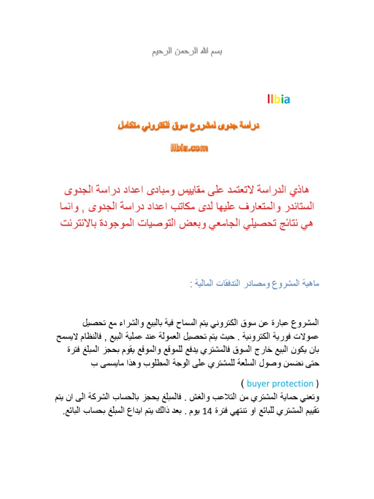 نموذج دراسة جدوى تطبيق الكتروني Pdf