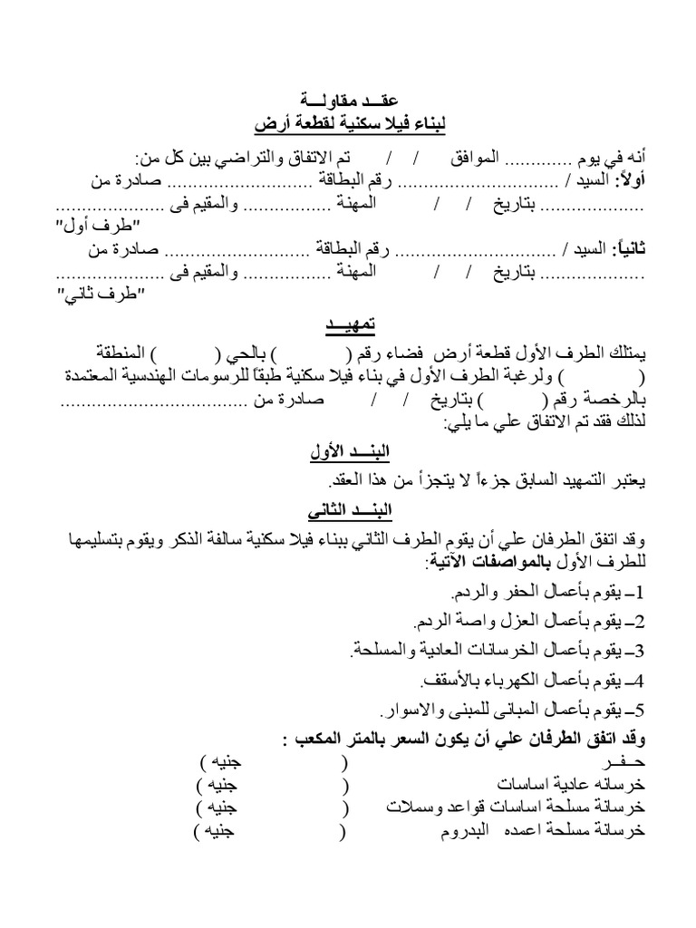 نموذج عقد مقاولات بناء وثيقة عقد مقاولهتم الاتفاق بمدينة في يوم الموافق بين. نحن لا نتحمل اي مسؤولية نتيجة قرائتك لصفحات كتاب شمس المعارف قصص. تحذير من قراءة وتحميل كتاب شمس المعارف الكبرى مجانا pdf تحذير. المقاول الإنشائي صيغة نموذج عقد مقطوعية تسليم مفتاح تتم العملية بالمقطوعية ويقدم فيها الطرف الثاني كل ما يلزم من مون ومعدات وأدوات وعمالة وسقائل ودون الرجوع على الطرف الأول بأي شيء من ذلك.